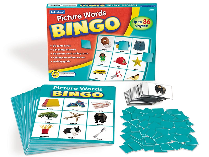 Este bingo fácil de jugar, ofrece a los niños una forma muy divertida para identificar las palabras-y construir su vocabulario! Se juega igual que el bingo tradicional, sólo que cuando se llama a una palabra, los niños la tratan de encontrar en sus tarjetas con fotos ilustradas! Incluye todos los materiales que necesita para hasta 36 jugadores.
